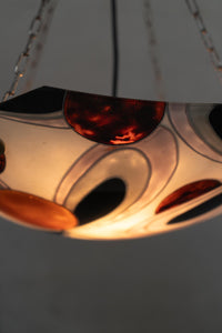 This elegant pendant lamp features a handcrafted glass shade in warm tones of purple, bordeaux, and earthy brown. The soft, flowing patterns give it a cozy and artistic feel. The metal chains are adjustable in height, making it easy to adapt to any space. A beautiful blend of Mid-Century Modern and Art Deco style, perfect for adding warmth and character to your interior.